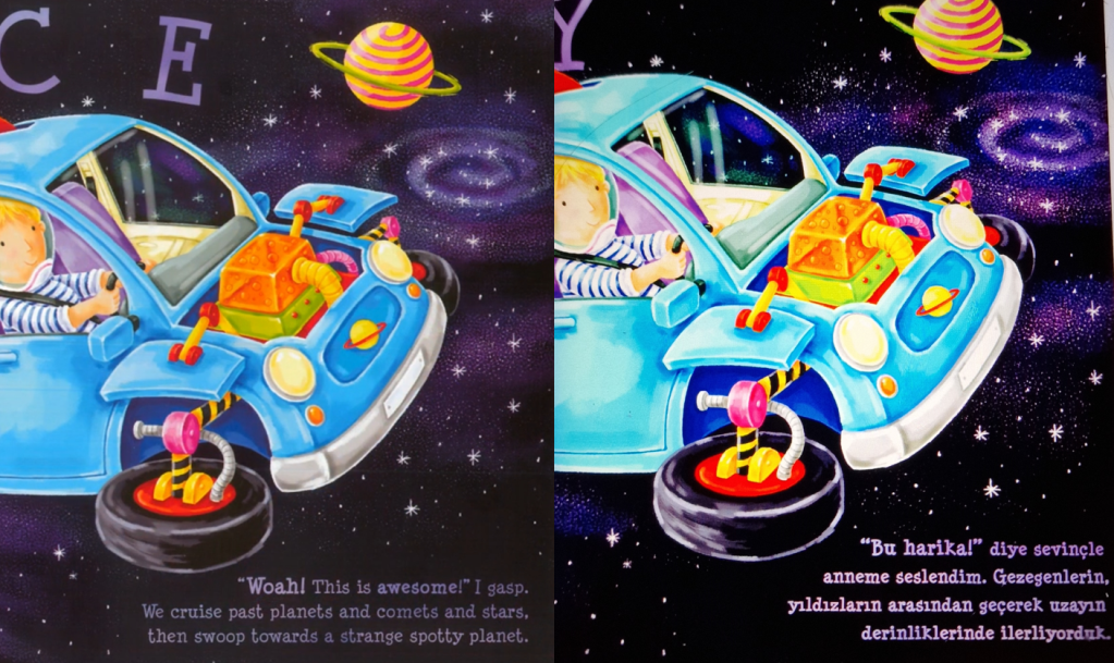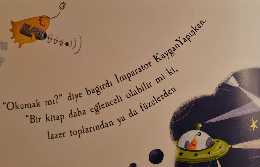 Başka bir örnek ise “Uzay Okulu” isimli kitaptan. “Yıldız, gezegen falan neyse de, kuyrukluyıldız fazla kaçar.” diye düşünülmüş, güzelim “comet” kelimesine yazık edilmiş gibi duruyor: